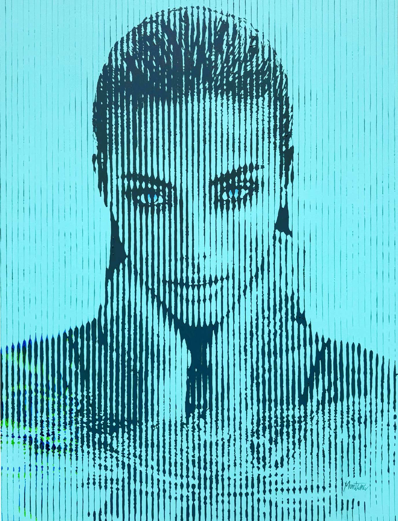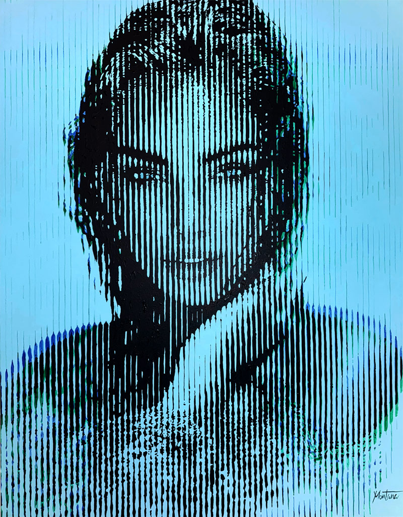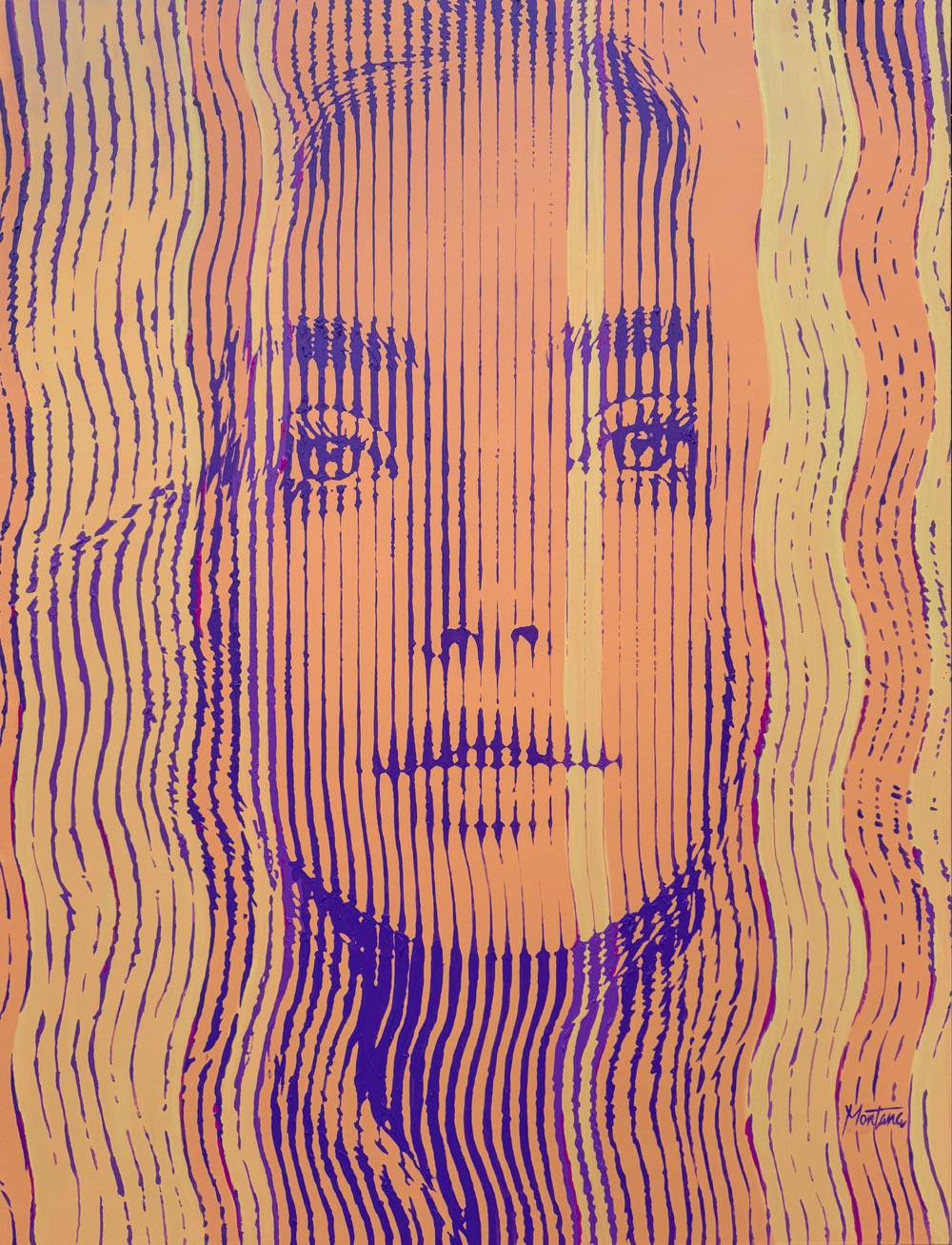 Montana Engels is a contemporary artist known for her own hand-painted stripe technique. Using only stripes she creates 1/1 unique portraits that shift between abstraction and realism due to perspective. Viewed up close, the paintings dissolve into structured lines. From a distance, they become a powerful and detailed painting.